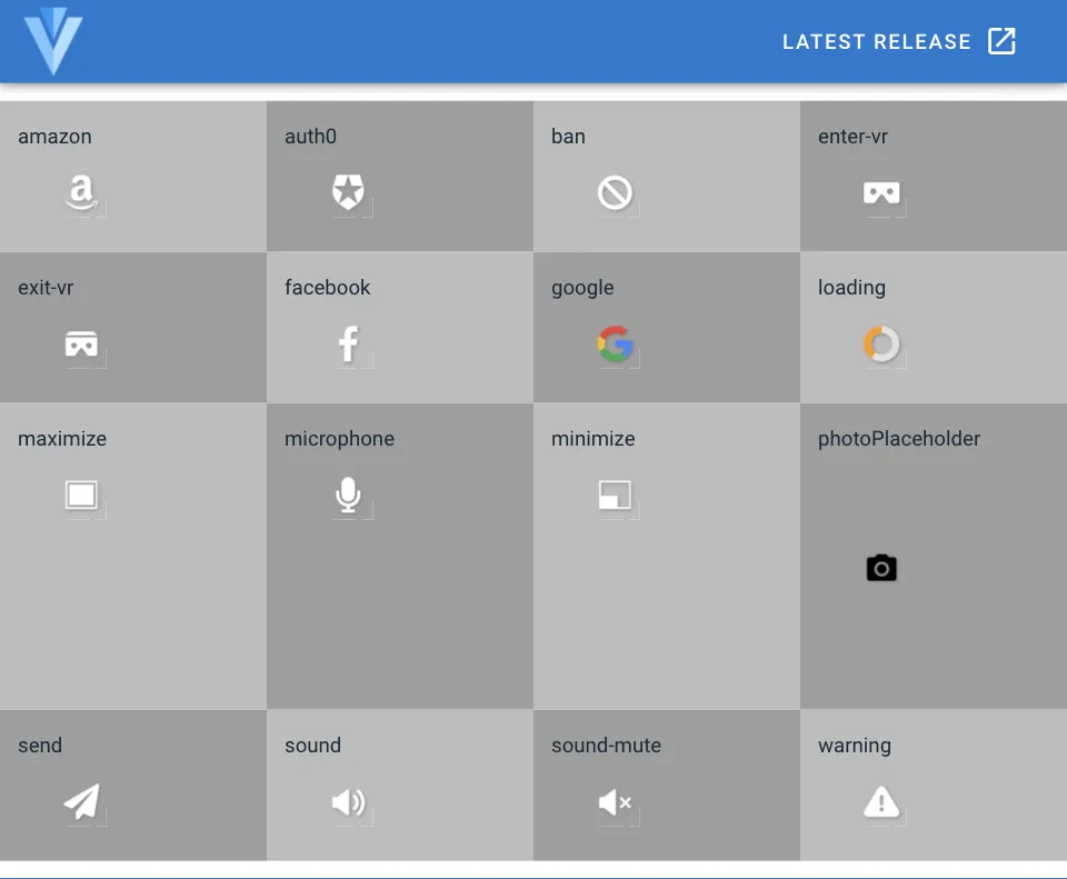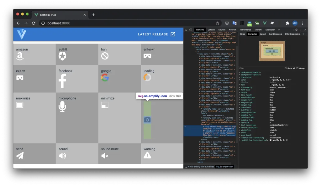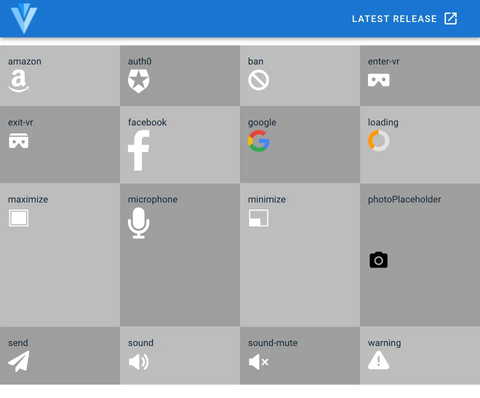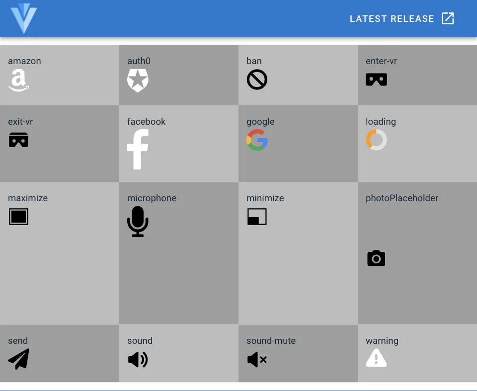特定のアイコンを表示できるようになります。アイコンによってデフォルトのサイズがバラバラなようなので、幅や高さを CSS プロパティで指定して使うことになります。