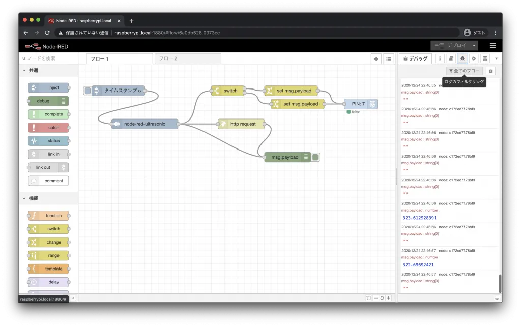 Node-RED でのセンサーの扱いで少し苦労しましたが、このような形で対応できることがわかりました。