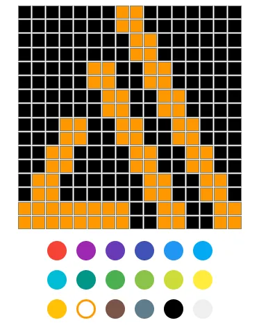カラーピッカーで色を選択し、上のブロックをクリックすると、その色でブロックを塗ります。