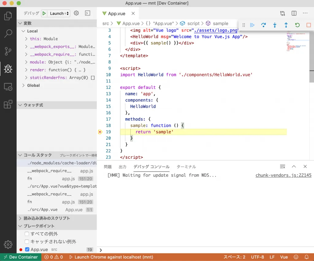 こちらでも “Dockerを使った開発環境の構築(デバッガつき)” を、とても簡単にできました。