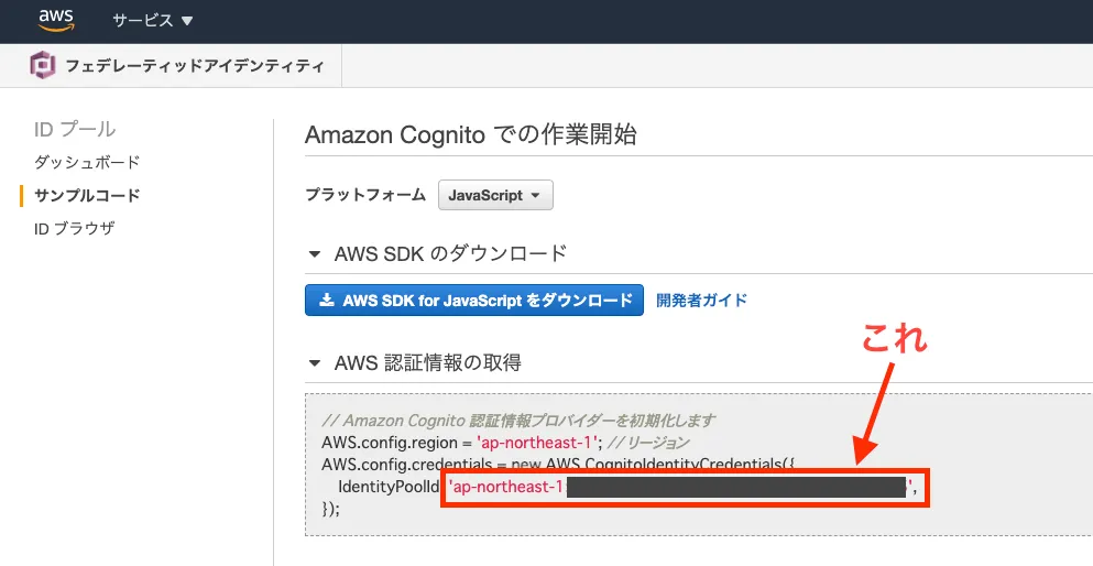 const IDENTITY_POOL_ID = 'ap-northeast-1:XXXXXXXX-XXXX-XXXX-XXXX-XXXXXXXXXXXX'